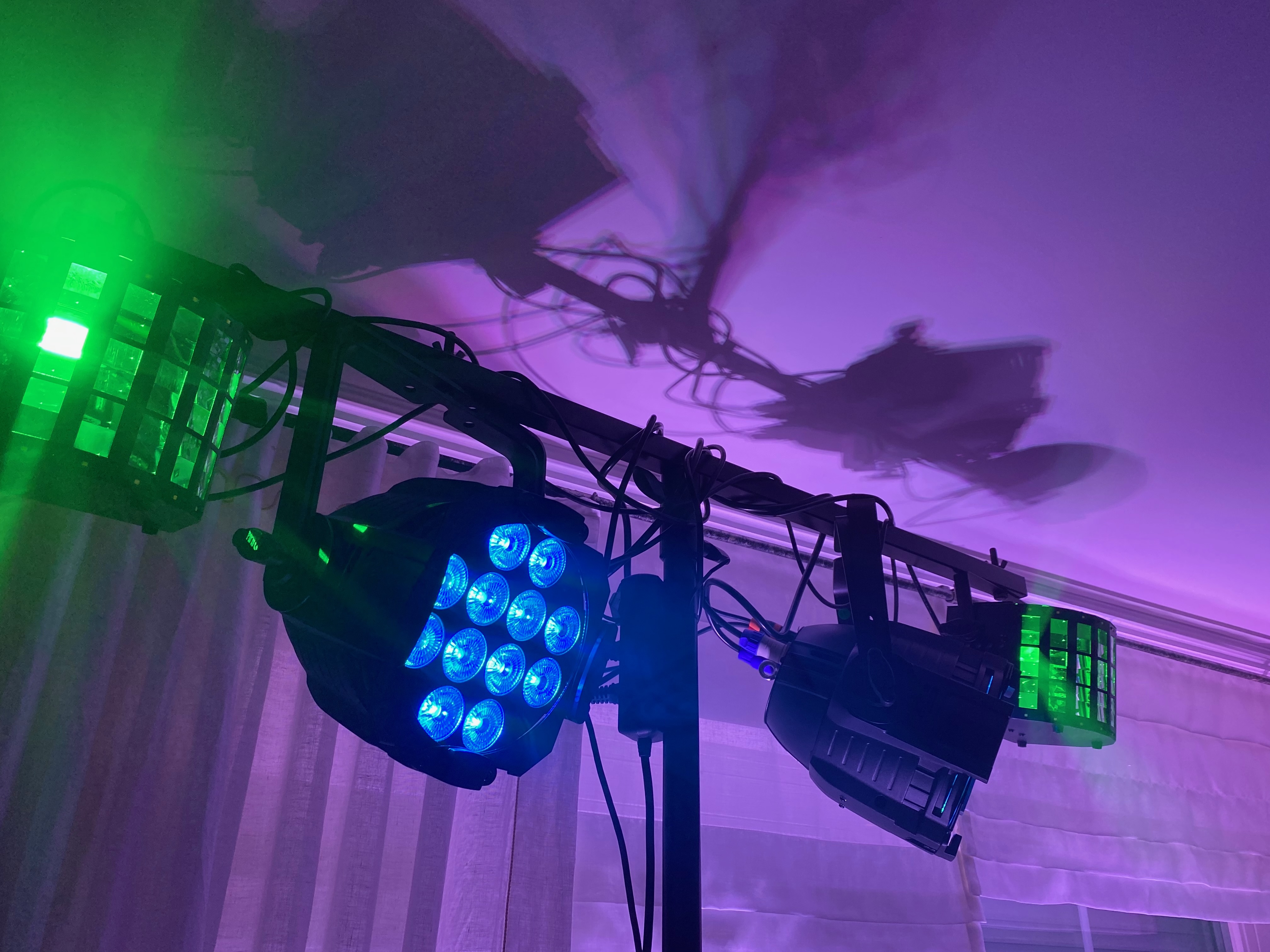 Tonpaket, großes Lichtpaket(LED-Spots, Derby-Effekte, Floor-LED-Spots, Nebelmaschiene), Mikrofon